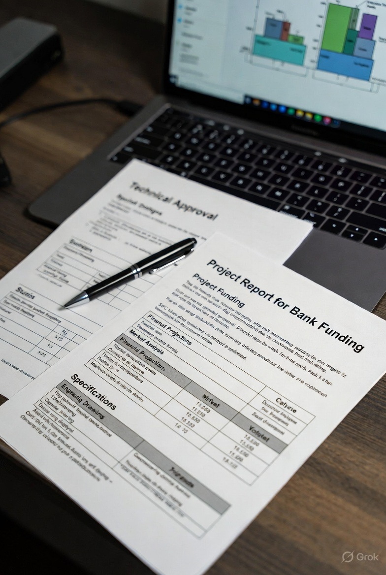 Professional project reports for bank funding and technical approvals.